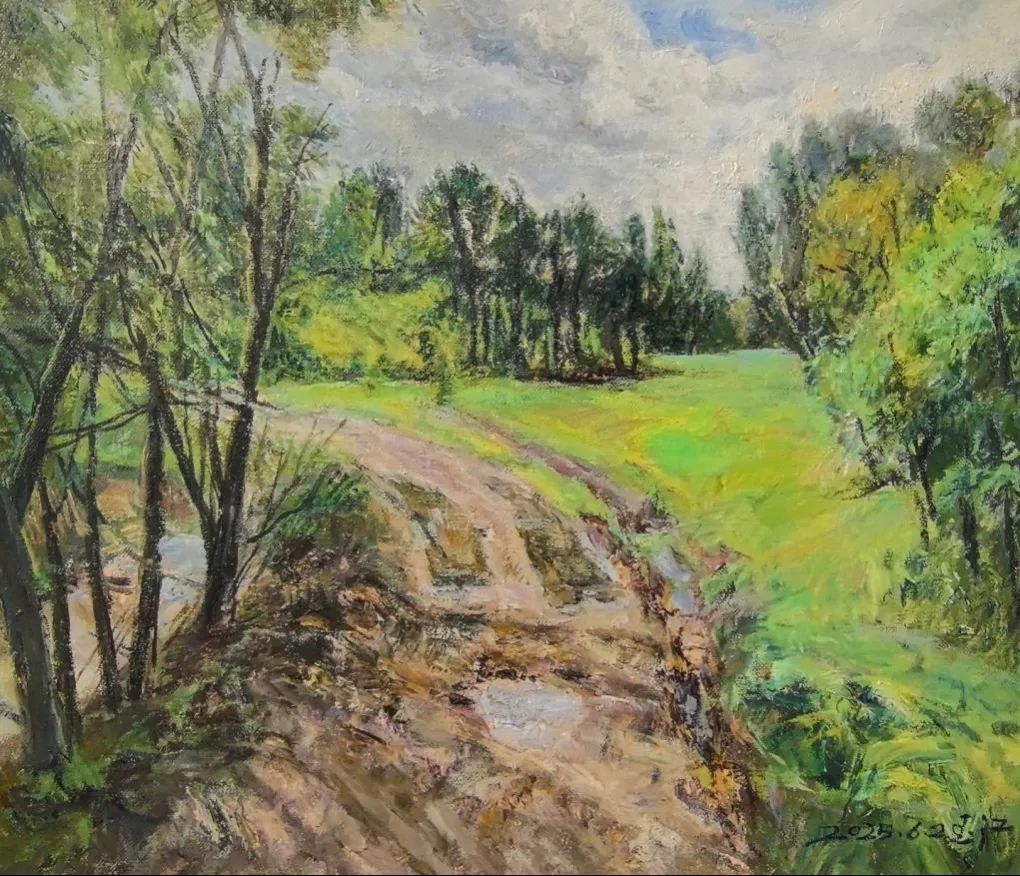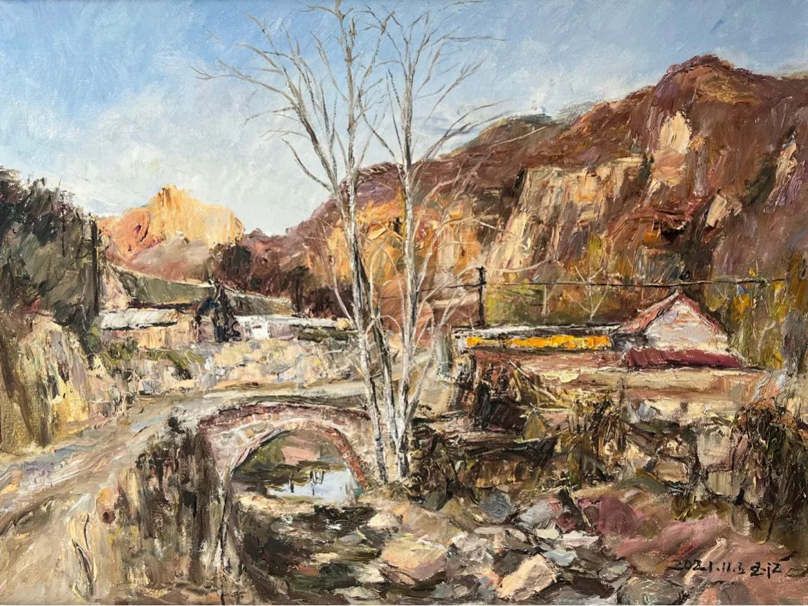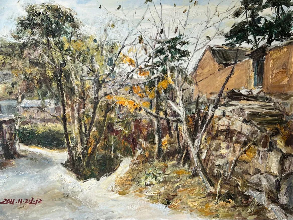 ,主持油画艺术教学至今。他的艺术探询注重风景写生,践行于实处,坚持“写生中创作”基于现实主义审美意识。他画大东北的黑土地、燕山深处古村落、平常的静物,在色彩感受上注重情感的融入,有感于人间冷暖和岁月沉沦的痕迹,显之于笔触。他是上个世纪六十年代初生人,也是八十年代东北师范大学美术系毕业的大学生,他的画有着一代人的共同记忆和审美范式。感伤,且不失担当;朴华,且不显于技巧;凝重,且同频于时代。“笔墨当随时代”(石涛),他的艺术是一代人对于一方山水的真情坦露和端正表述。在他的油画艺术中亦能看到现实主义美术的印迹和近代中国乡土美术的抒怀。他的油画色彩沉郁、厚重,笔触朴华、灵动,显示出画者对于油画语言的高度淬炼和深刻理解,对于欧洲油画传统内在意蕴和审美范式的深入思考。他的艺术表达是真实的,这在艺术当下显得弥足珍贵;亦是朴素的,这正是一位高校教授人文修为的本色呈现。