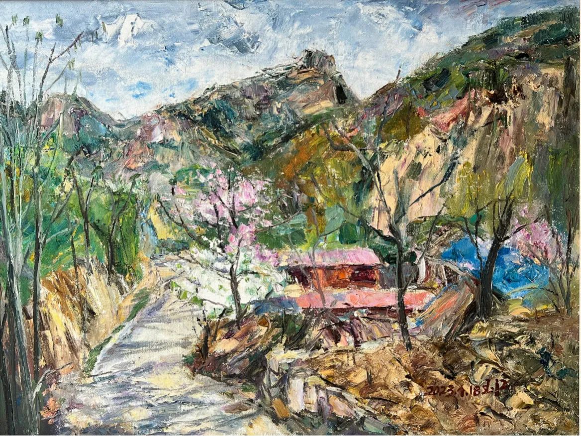 《春意正浓加碑岩》 60×80cm 布面油彩 2023年