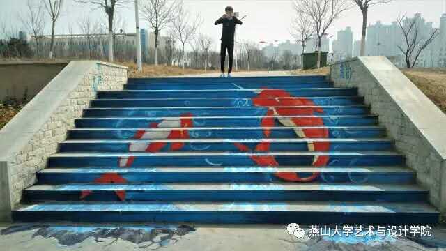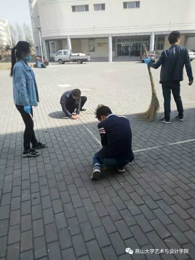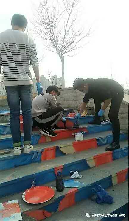 遇到问题大家积极献策,第一天工作效果颇好,第二天我们再接再厉,材料不够,为了绘画效果更好,大家就自掏腰包弥补不足。惹不少人驻足欣赏,我们也乐在其中。当然,过程之中,老师也给予不少建议与指导,我们在不断的调整,致力于做出更出色的东西来,为艺院增添氛围,我们内心是兴奋的!
