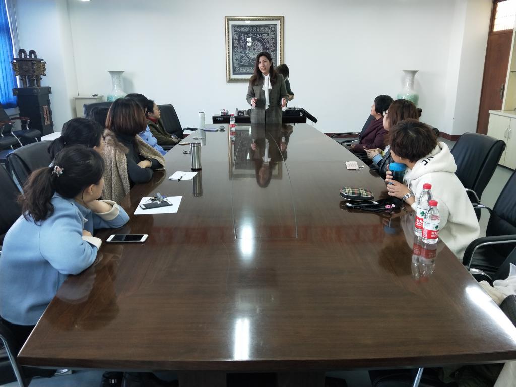 姚远老师从打造女性生活淡雅妆入手进行讲解,与参加讲座的女教师们分享了如何进行妆前保养、化妆的基本步骤等生活妆常识,并以一位女老师作为模特,进行了现场化妆演示,并同时为到场的老师们答疑解惑。整个现场座无虚席、气氛十分热烈。