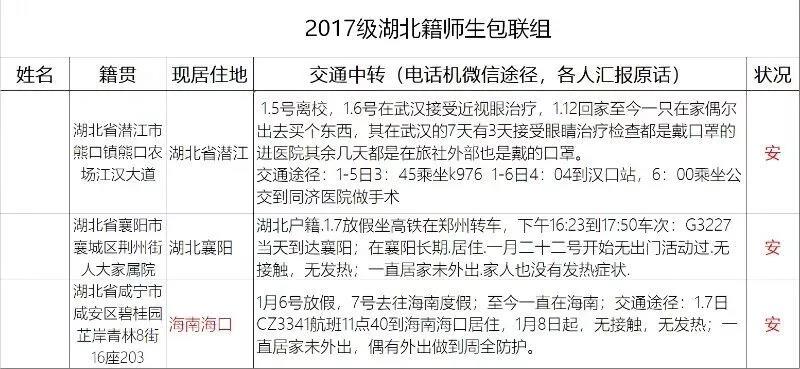 工作开展过程中,老师们通过电话、微信等方式与包联学生建立联系,每天了解学生及家庭情况,疏导学生们的心理压力;坚决落实晨、午检制度,坚持每日两次汇总上报信息,定期参与包联老师微信群讨论,共同提高服务学生水平。以强烈的大局意识,巨大的责任心,暖暖的爱心,确保了学院湖北籍学生包联工作的顺利进行。