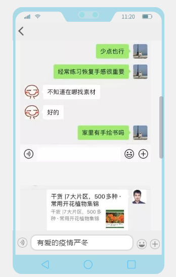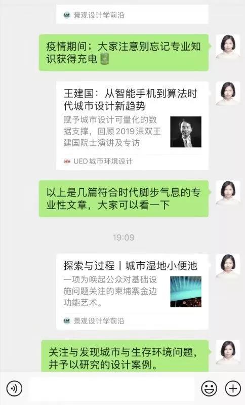 “以上几篇符合时代脚步气息的专业性文章大家看一下”,“每天在家里画五张图,这对于恢复手感很重要”,“多认识植物,后天我考试,说一种植物,你说出特点”……