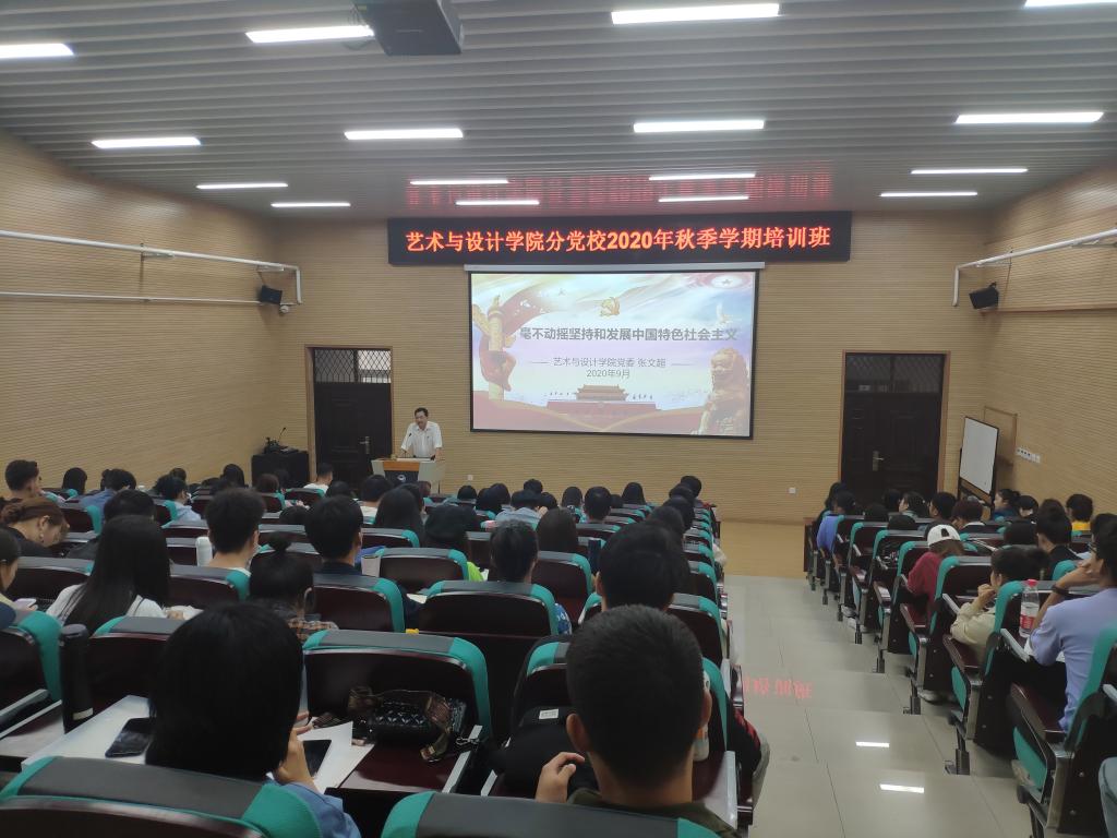 党委书记张文超在音乐馆B105为学院分党校2020年秋季学期培训班学员开展以《毫不动摇坚持和发展中国特色社会主义》为主题的党课。学院部分预备党员,全体发展对象、入党积极分子参加了此次党课培训。