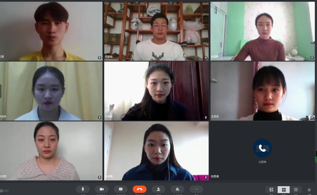 3月11日下午14:30,舞蹈表演专业2017级学生在钉钉APP上准时开始毕业论文的开题答辩工作。本次开题工作历时5小时,共计27人参加,张竹岩、徐熳、孟丹娜、高永鹏、刘燕、赵世莹六位老师担任评委。