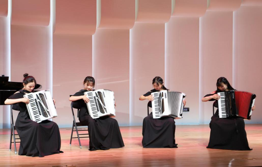 2017级音乐表演专业声乐、钢琴、手风琴、小提琴、大提琴、双排键、古筝、琵琶、二胡、扬琴专业的体学生参加了演出,演出作品形式多样、异彩纷呈,音乐表演专业全体教师对学生的作品进行了精心的指导。同学们在音乐会上的精彩演绎体现了较高的艺术水准,达到了预期的效果。同学们通过音乐会演出表达了浓浓的师生情、同学情和母校情,为中国共产党百年华诞献上美好的祝福!