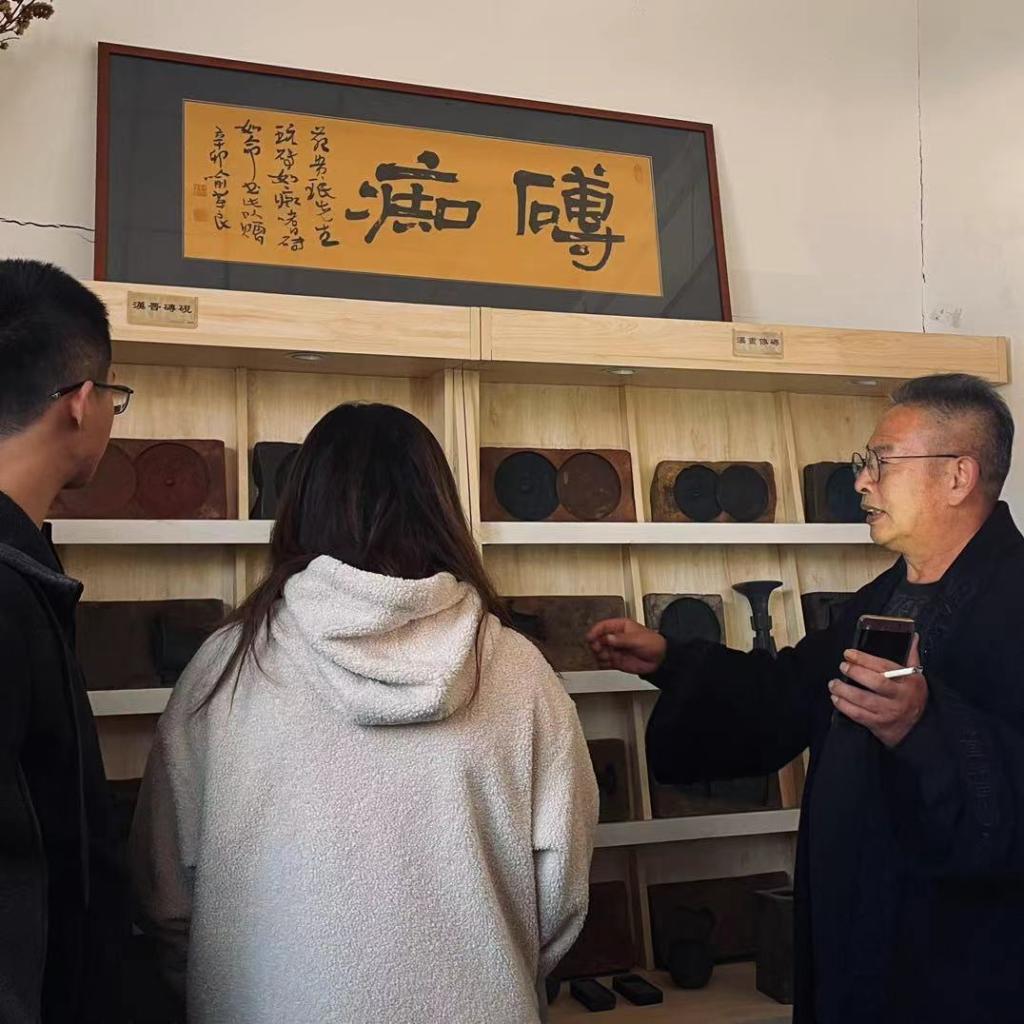 本次授课主要是以“汉珍斋非遗项目研习馆”馆藏古砖实物教学,引导学生系统的了解“金石学”中古砖的分类及古砖特有内容与文化内涵。系统的了解西汉至当代汉字进化过程及铭文书体的演变过程。考证《天发神谶碑》与魏晋悬针篆的联系,考证魏晋时期汉隶与楷书过度形成的“隶楷”书体,感悟古人语法的运用与现代词汇的联系,书法、篆刻与雕刻砖铭模版的联系。让铭文砖说话、引导学生从魏晋铭文砖中吸取养分,集字成书《隶楷》,填补书体空白。近距离的了解汉魏六朝的图腾与画像。