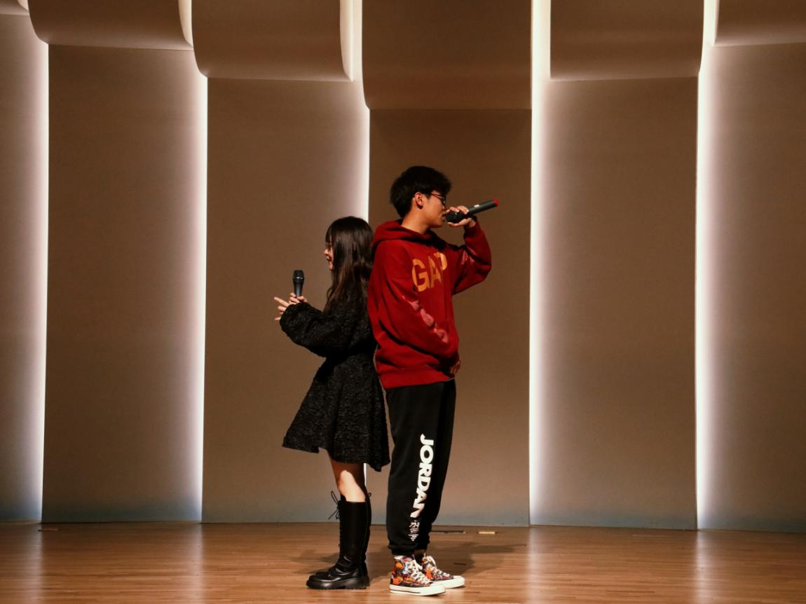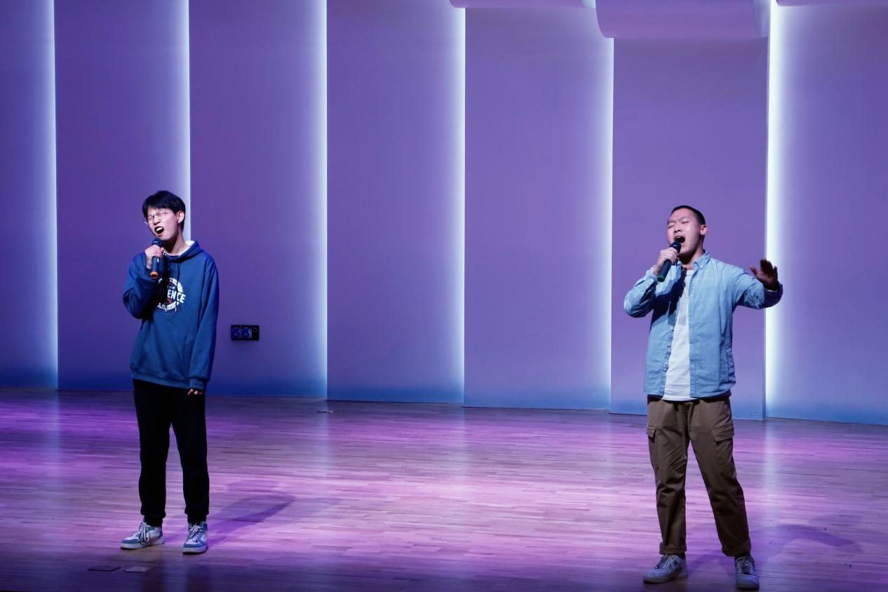 建工学院程威浩与文法学院解景媛带来歌曲《地球逃离计划》