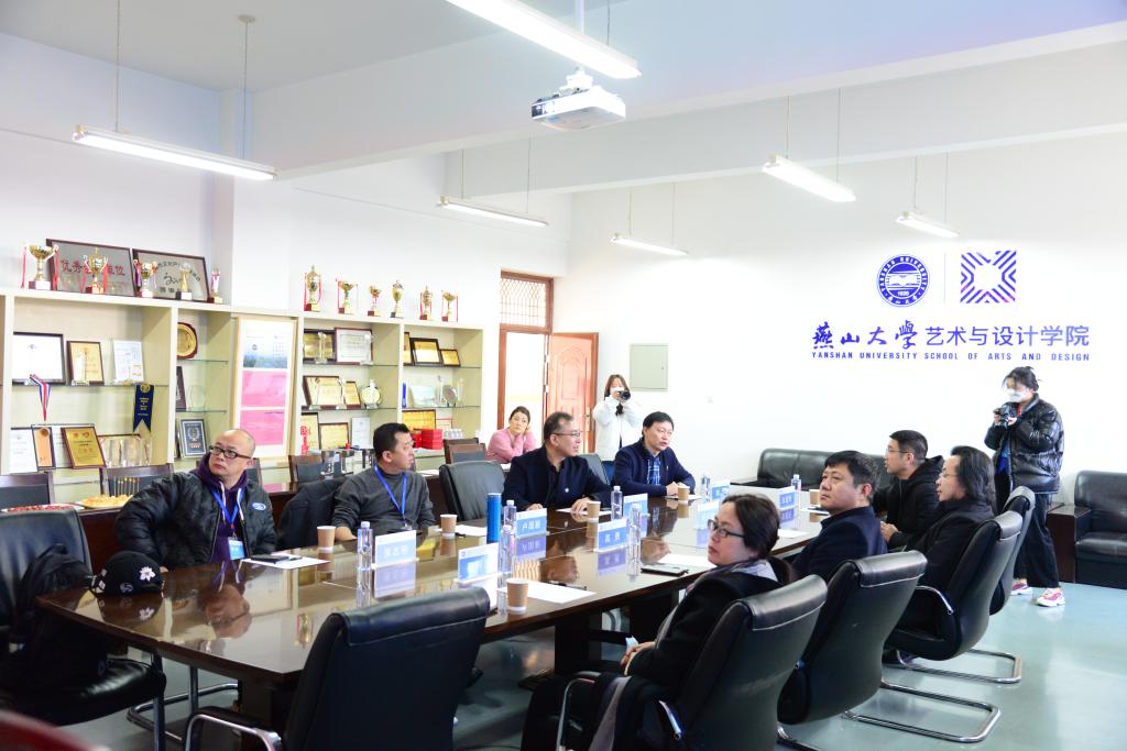 C305会议室召开了河北省艺术设计教学创新研讨会。出席会议的领导有河北大学艺术学院院长、河北省艺术研究生教育指导委员会秘书长刘宗超,华北理工大学艺术学院院长高勇,河北农业大学艺术学院院长卢国新,河北经贸大学艺术学院院长聂书法,河北师范大学美术与设计学院副院长张爱民,河北大学艺术学院副院长侯志刚,每日大赛