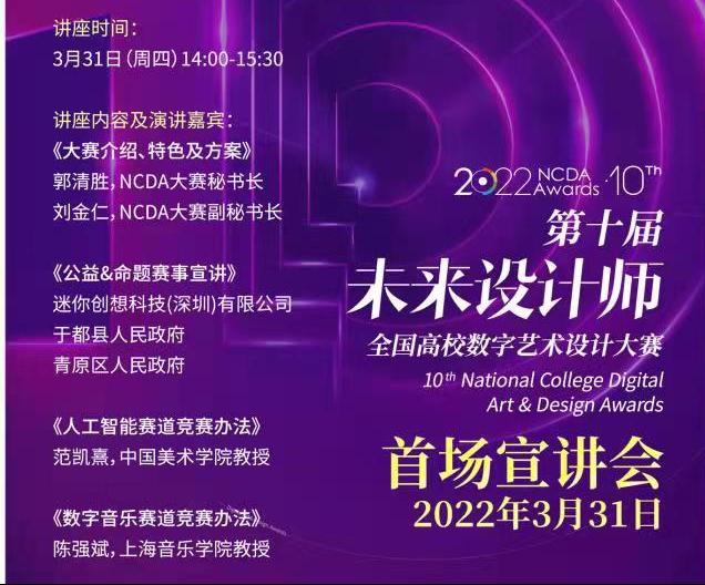 本次宣讲会由(NCDA)大赛组委会及专家主要针对大赛介绍、特色及方案,公益命题赛事宣讲、人工智能赛道竞赛办法、数字音乐赛道竞赛办法等专项赛道的参与指导进行了宣讲。