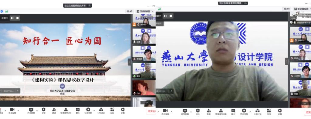 环境设计系桑懿老师以《建构实验》课程为例,通过站位—课程与课程思政内涵、落实—课程思政教学设计思路、成效—教学反馈与思政效果等方面展开说课,并探讨了教师在课程思政教学过程中的责任与使命。