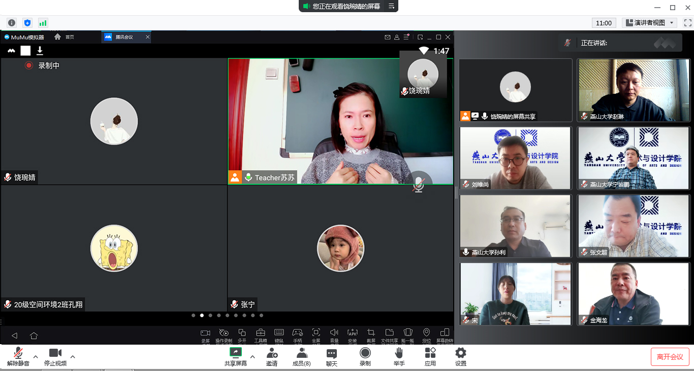 开展本学期第二次集中线上教学专项检查。院长孙利、党委书记张文超、副院长赵琳、副院长刘维尚、党委副书记宁岩鹏等学院领导班子成员,特邀教务处金海龙处长深入课堂,开展线上听课督导活动,本次听课覆盖了音乐表演、舞蹈表演、环境设计和工业设计4个专业,8门专业课程。