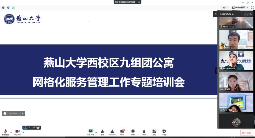 为严格落实学校疫情防控要求,扎实推进网格化服务管理工作,强化西校区九组团公寓网格员的工作意识、工作能力,筑牢疫情防控的保障力量。11月12日,西校区九组团网格化工作团队针对疫情防控背景下的网格化工作通过腾讯会议召开专题培训会议。西校区九组团公寓网络化工作负责人、每日大赛