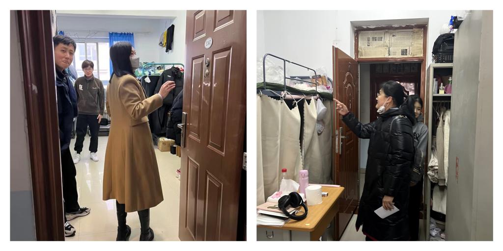 在学生宿舍,检查人员对学院348间本科生、研究生寝室进行走访,做到100%检查。检查过程中,对检查出来的卫生、安全隐患等问题现场进行了监督、整改、处理。每到一间宿舍,辅导员们都叮嘱同学们定时进行室内通风换气,勤洗手、勤消毒,提高自身安全意识。同时,辅导员与学生们就学业进展、未来规划、就业考研、思想状态等做了深入交流。