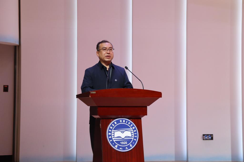 “古韵新声艺术团”团长孙贵良在致辞中表达对学院热情接待的感谢,他指出冀东民歌是冀东人民的,更是燕赵大地的,希望通过本场演出,能够对在场观众予以启发,能够取得在高校传播优秀区域音乐文化的效果。