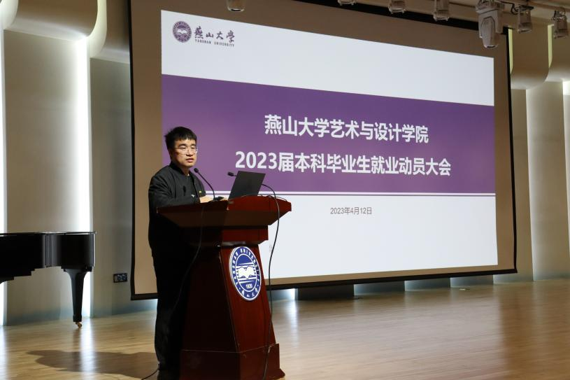 音乐厅召开2023届毕业生就业动员大会。学院党委副书记宁岩鹏、辅导员盖鸿章、辅导员卢文龙及2023届毕业生参加会议。