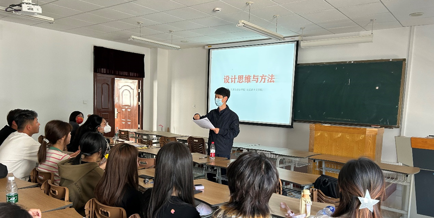 美术馆A203教室,校级思政示范课程《设计思维与方法》教学团队与马克思主义学院的张畅老师、杜利英老师进行了课程思政双向融合“双师课堂”共上一堂课活动。