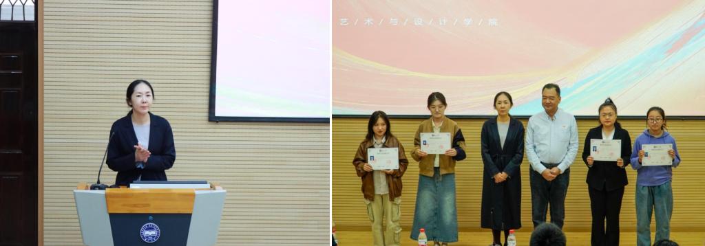 “文化传承与设计”微专业的学生李亚婧代表学生发言。她回顾了微专业的学习历程,分享了她的学习感受和学习收获,表达了对老师和学校的感激之情。“篆刻艺术”微专业负责人谷庆巍作为微专业教师代表发言。他介绍了微专业的创办过程,分享了微专业的办学特色,向顺利结业的同学们致以由衷的贺意,并一同分享喜悦与成绩。