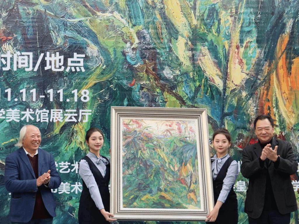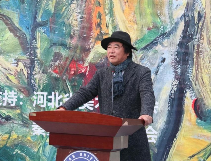 原院长孙利、秦皇岛市文联副主席、秦皇岛市美术家协会主席宋鸿钧,秦皇岛市油画学会主席王彦文分别作了致辞,并表达了对张玉江老师本人和画展的美好祝福。张玉江老师也讲述了自己的艺术历程。最后,由副校长陈国强宣布展览开幕。