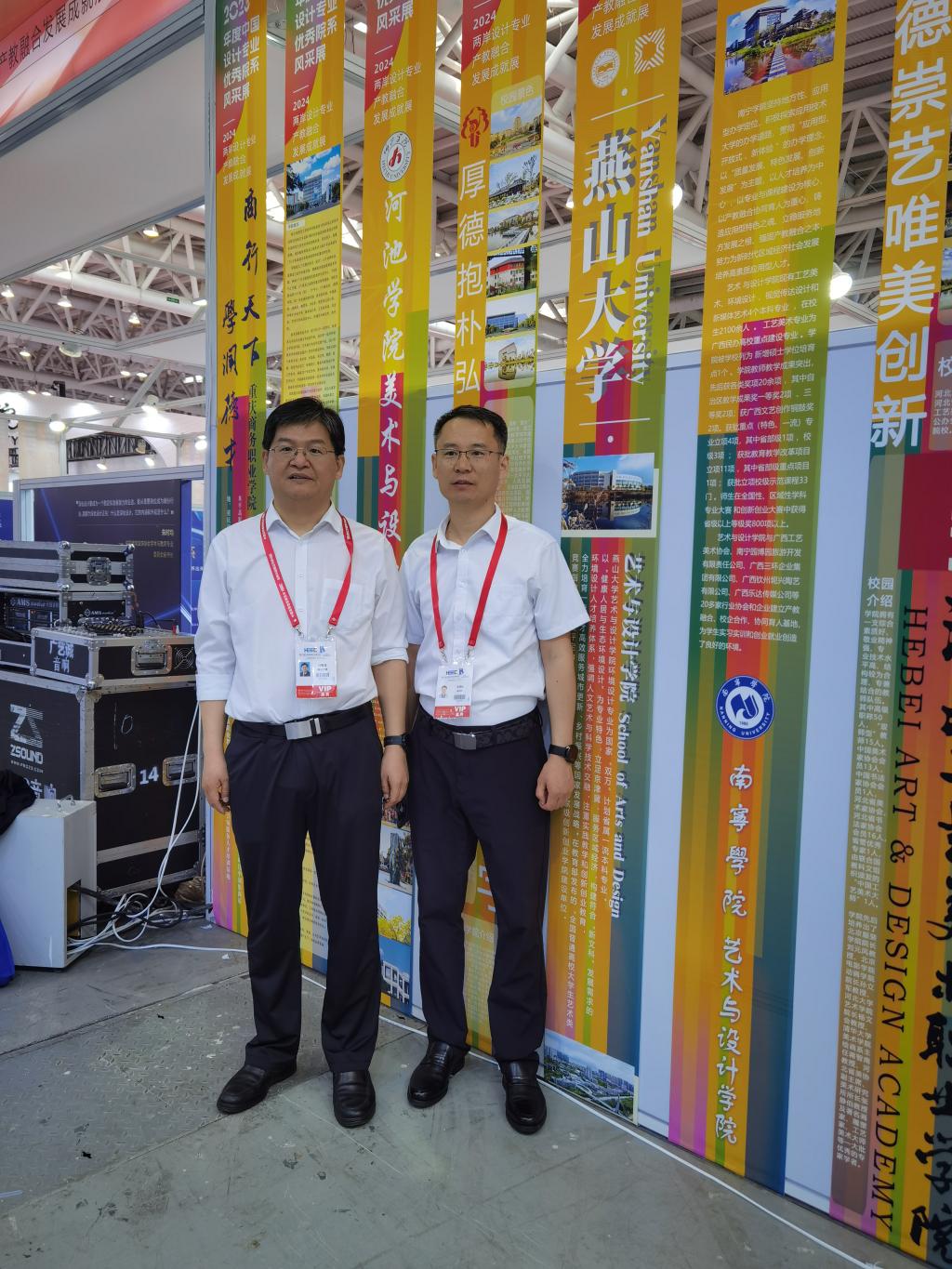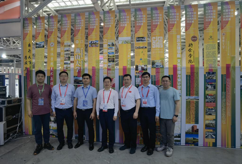 在设计教学领域积极探索,勇于创新,取得了可喜的成绩,受邀入选第61届高博会“2023年度中国高校设计教学成果展(2024年两岸设计专业产教融合发展成就展)2023年度中国设计专业优秀院系风采展”。王年文副院长代表学院登台领取入展证书。
