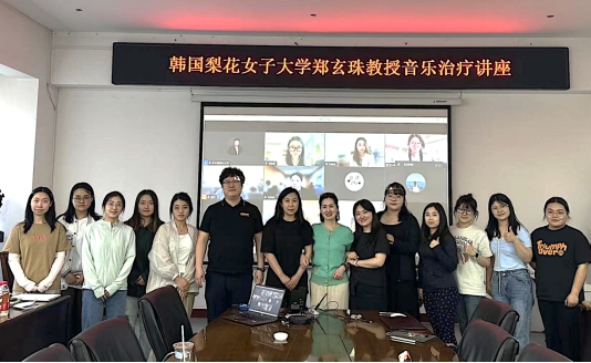 特邀韩国梨花女子大学郑玄珠教授举办音乐疗愈专题讲座,线上线下近百名师生参加此次讲座。