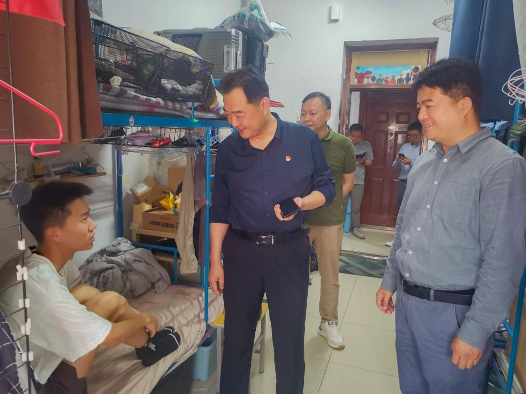 学院始终将学生的安全放在首位,毕业生们即将离开校园,踏上新的人生征程之际张文超书记提醒同学们在离校前要做好宿舍的清洁和整理工作,确保不留安全隐患。同时,他也提醒学生们要注意人身安全,防范电信诈骗等不法行为。赵琳院长在与学生交流时,详细询问学生们毕业后的去向和打算,表示学院将继续为毕业生们提供帮助和支持,助力大家实现人生梦想。走访过程中,学院班子成员、辅导员们仔细查看了用电安全、消防设施、门窗安全等方面的情况。
