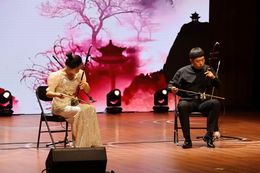 、河北师范大学、河北大学和河北经贸大学。节目包括独唱、重奏、合奏、舞蹈、微音乐剧等形式。由我校选送的男声独唱《日月之恋》、双二胡协奏《楚颂》和舞蹈《海羽织春》,与省内其他高校进行同台交流和切磋。精彩的现场表演,展示了我校研究生精湛的专业技艺和昂扬的精神风貌,更体现了我校研究生培养教育的丰硕成果。