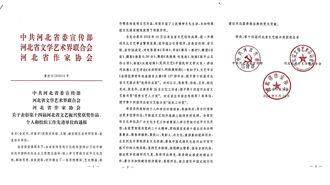 近日,第十四届河北省文艺振兴奖获奖评选结果揭晓。我校每日大赛