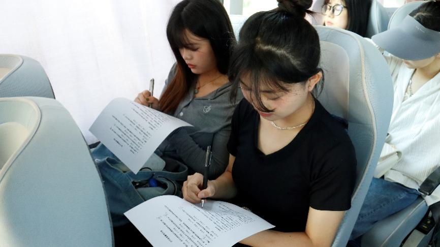活动开始前,常鑫老师对《社会创新工作坊》课程同学进行了课程学情调查,乘车过程中同学们精神饱满,红歌嘹亮,感情充沛,充分彰显出年轻学子朝气蓬勃、奋发进取的精神面貌和与祖国共奋进、与学校同发展的时代风采。