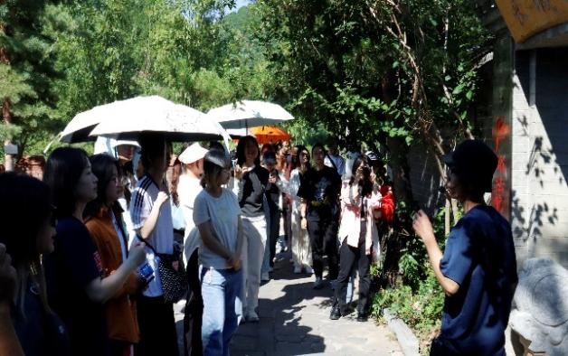 下午师生们开展了田野”思政大课堂”活动,首先,许野老师对板厂峪长城乡村进行整体介绍,并对目前存在问题及设计需求进行讲解;其次,外籍教师李京美(이경미)对韩国非物质文化遗产保护现状、经验与启示进行分享,并对同学们关于韩国设计风格及韩国高校学生的学习现状进行交流;随后,视觉传达设计系常鑫老师对课程导向、理论、方法以及目标进行详细讲授,并以设计思维的形式开展“田野考察笔记”,11个小组成员分别对设计需求进行田野考察调研汇报;最后,马克思主义学院杜利英老师对田野”思政大课堂”进行总结,强调艺术设计与创新一定要在马克思主义立场观点方法指导下传承好中华优秀传统文化,立足为民服务,把艺术的设计描绘在祖国的大地上。