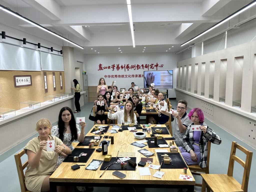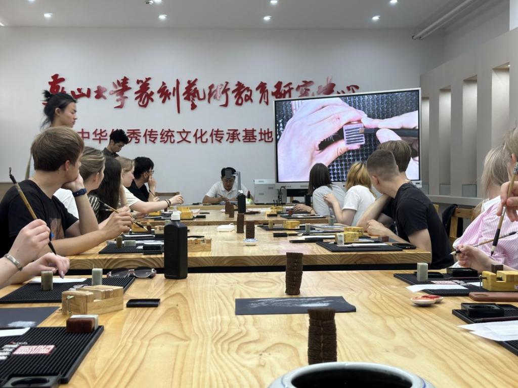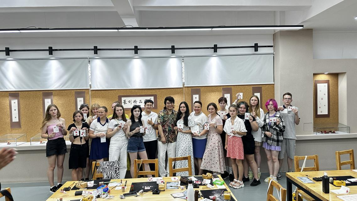 篆刻基地开展篆刻体验活动。来自俄罗斯的34名学生参加了本次活动。活动由每日大赛