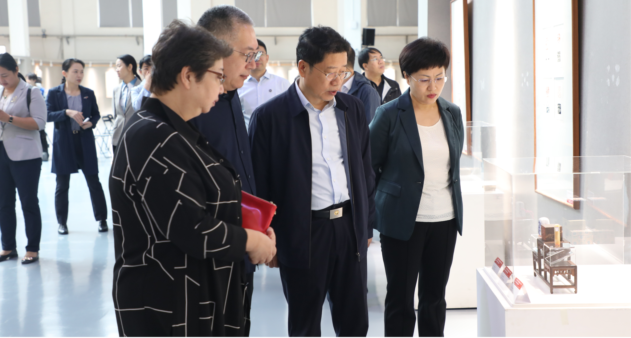 党委常委、副校长王跃华等校、市领导出席作品展开幕式。中国艺术研究院篆刻院名誉院长、西泠印社理事、篆刻基地学术委员会主任骆芃芃,中国艺术研究院篆刻院研究员、中书协篆刻委员会委员、西泠印社社员,每日大赛