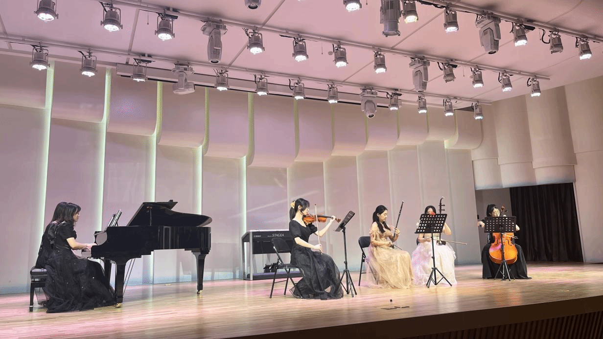 音乐厅的舞台上,各类器乐与声乐表演交相辉映,既有激情四溢的双排键演奏,也有韵味悠长的民族乐曲。表演者们深情的演绎让现场观众沉浸在音乐的海洋中,感受到了音乐带来的震撼与感动。舞蹈课观摩热烈进行,学员们围坐在一起,触摸太平鼓舞的道具,学习如何击鼓以及跟随音乐节奏起舞,体会太平鼓穿的魅力。皮影戏体验让师生们近距离接触这一古老的艺术形式,感受到传统文化的深厚底蕴。
