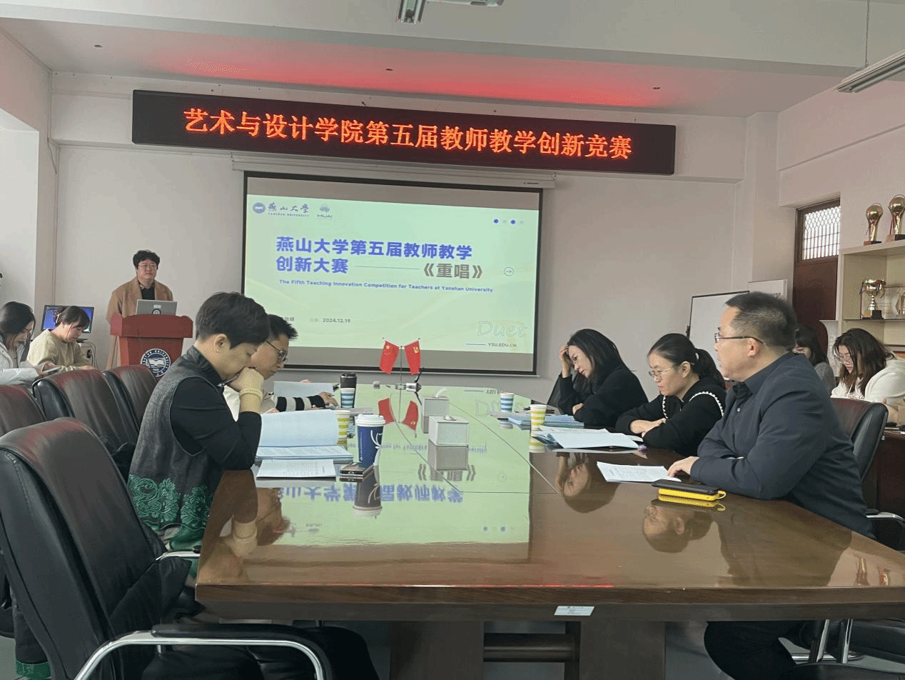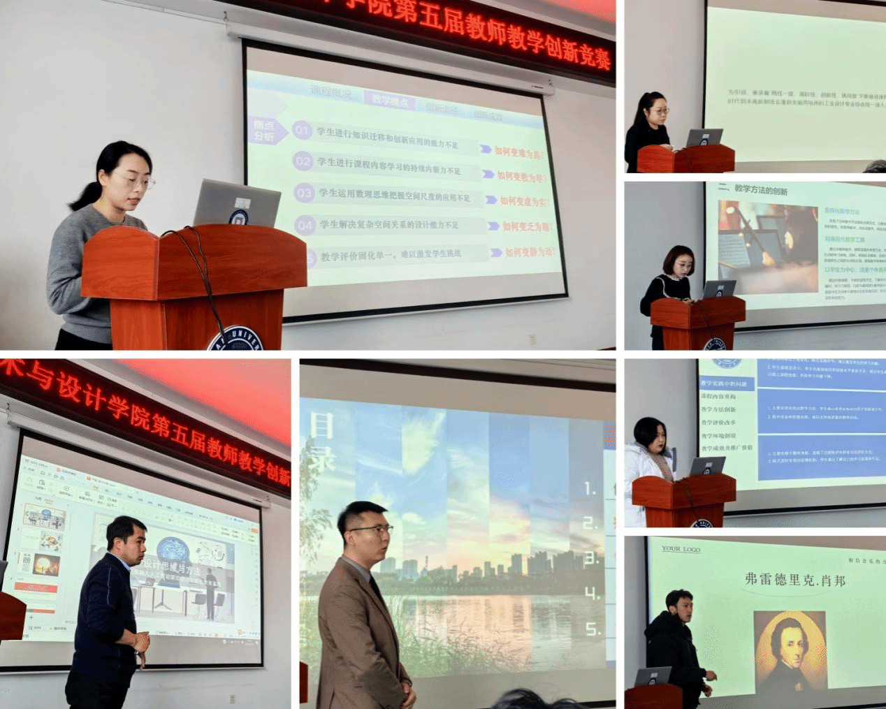 杨志宏、桑懿、卢颖三位具有丰富教学经验和比赛经验的老师担当本次竞赛的评委,来自工业设计系、环境设计、音乐系和基础教研部的8位教师参加,各系部青年教师现场观摩,副院长王年文主持比赛。