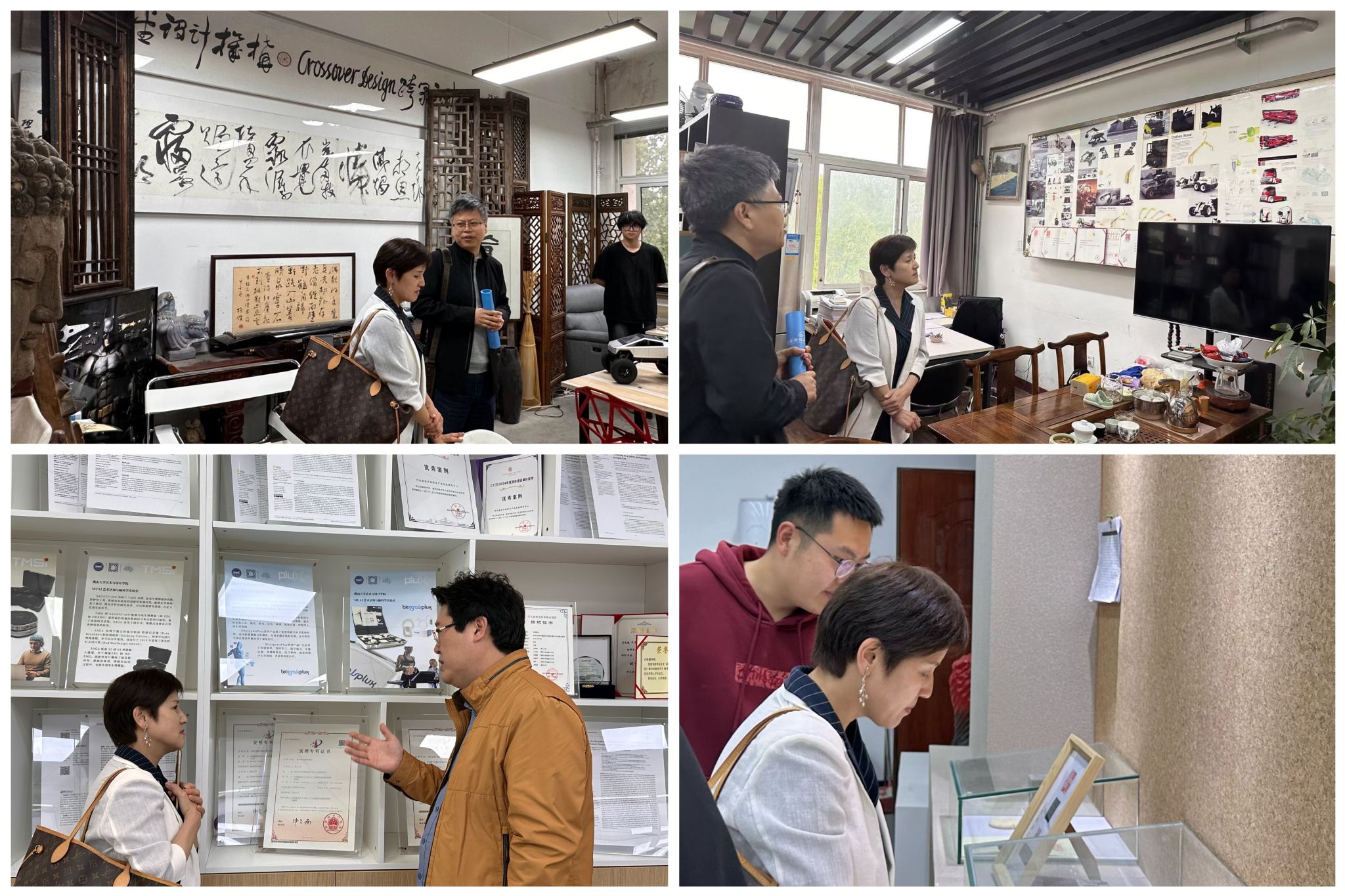 座谈会交流气氛热烈,话题紧紧围绕工业设计专业前沿动态、人才培养策略以及校际合作创新模式等关键议题展开。会后,侯士江等教师陪同张宝荣师姐参观了学院部分工作室。未来,我们将在实习实训基地建设、科研项目协同攻关以及毕业生就业等方面展开深度探讨,致力于为学生提供全方位、多层次的实践锻炼平台与成长发展机会,为地方产业的高质量发展注入强劲动力。