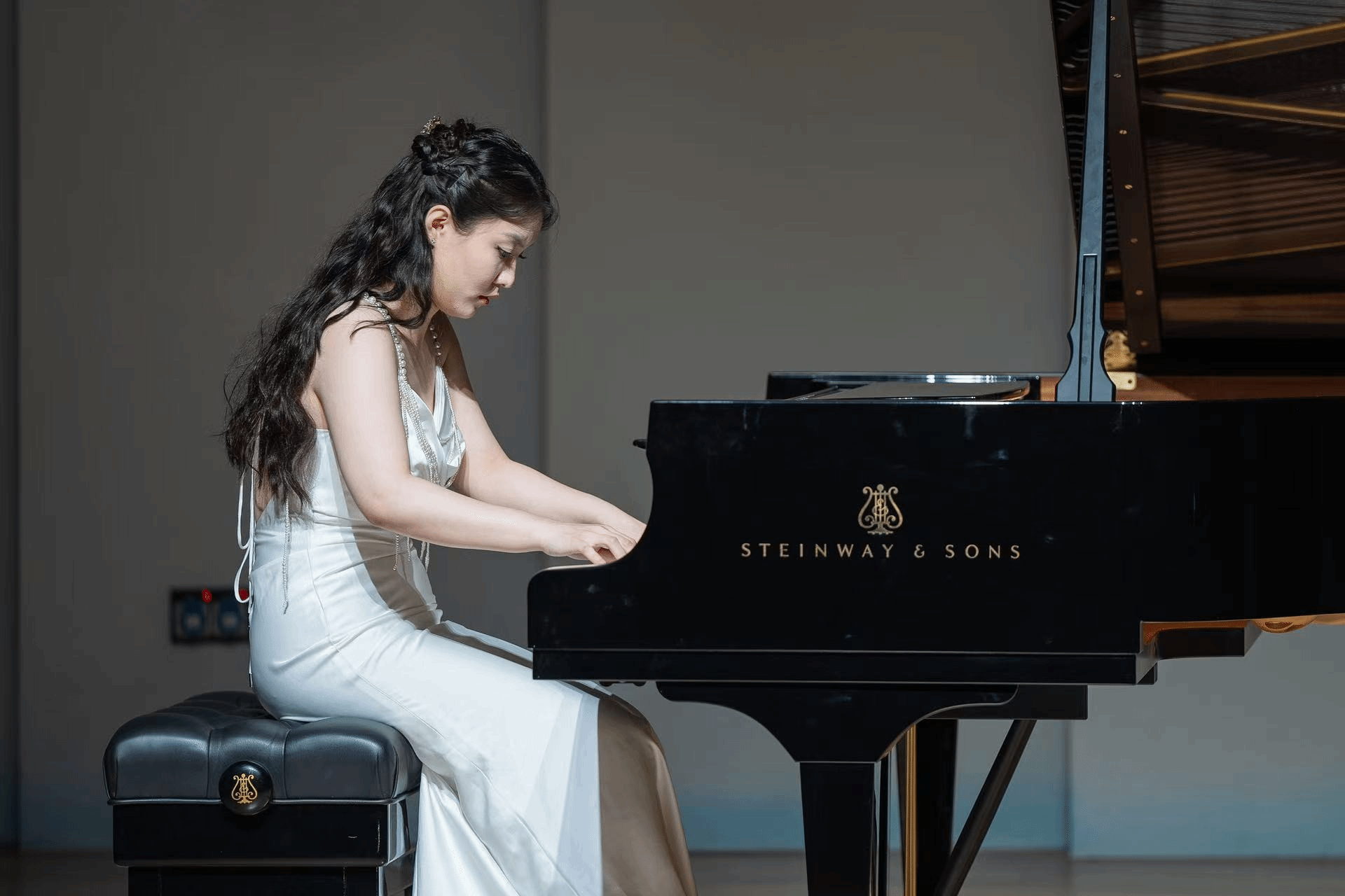 音乐会帷幕首先由钢琴演奏者王灿拉开,她为我们带来了圣桑《热情的快板》、格拉纳多斯《阿拉贡狂想曲》、张朝《努玛阿美》。王灿的演奏情感真挚而内敛,指尖流淌出的音符如诗如画,尤其在对作品复杂情感层次和音色变化的把控上,展现了深厚的音乐修养,将观众带入沉思与感动的艺术境界,赢得现场热烈掌声。