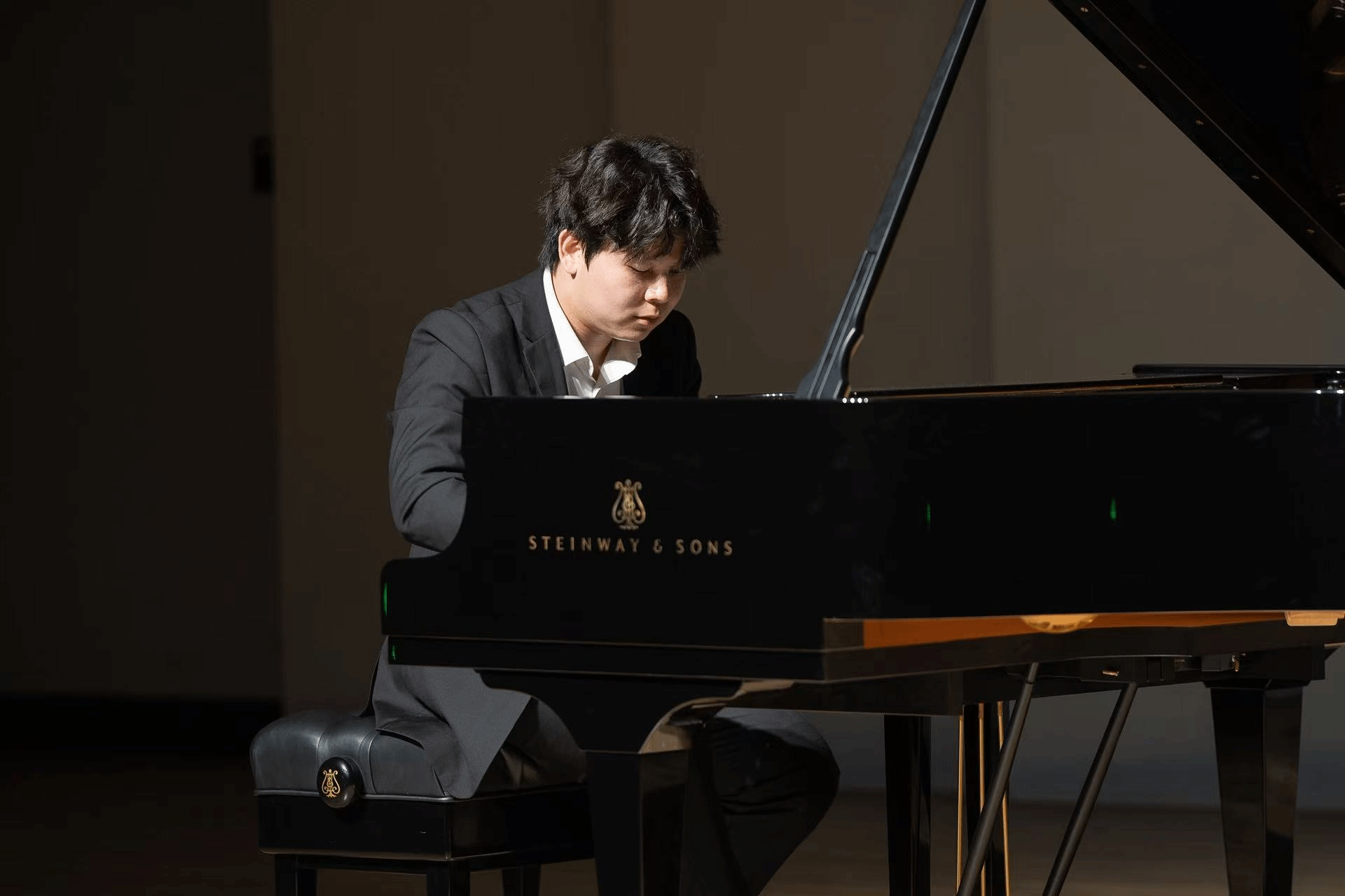 紧随其后登场的尹博达则带来了截然不同的音乐风格,他演奏了黄安伦《舞曲》、李斯特《帕格尼尼大练习曲第六首》、李斯特《匈牙利狂想曲第二首》。他的演奏充满活力与激情,对键盘的掌控力极强,在快速跑动、宏大和弦以及复杂的节奏型上展现出令人叹服的技巧。尹博达的音乐充满感染力,其热情奔放的演绎瞬间点燃了现场气氛,将独奏部分推向一个高潮,充分彰显了其作为钢琴演奏者的舞台魅力与艺术个性。