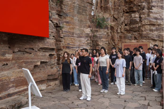 自2023年以来,连续第三年在红旗渠开展的“一次追溯、一段行纪、一场合唱、一份誓言”课程思政融合实践特色教学活动。