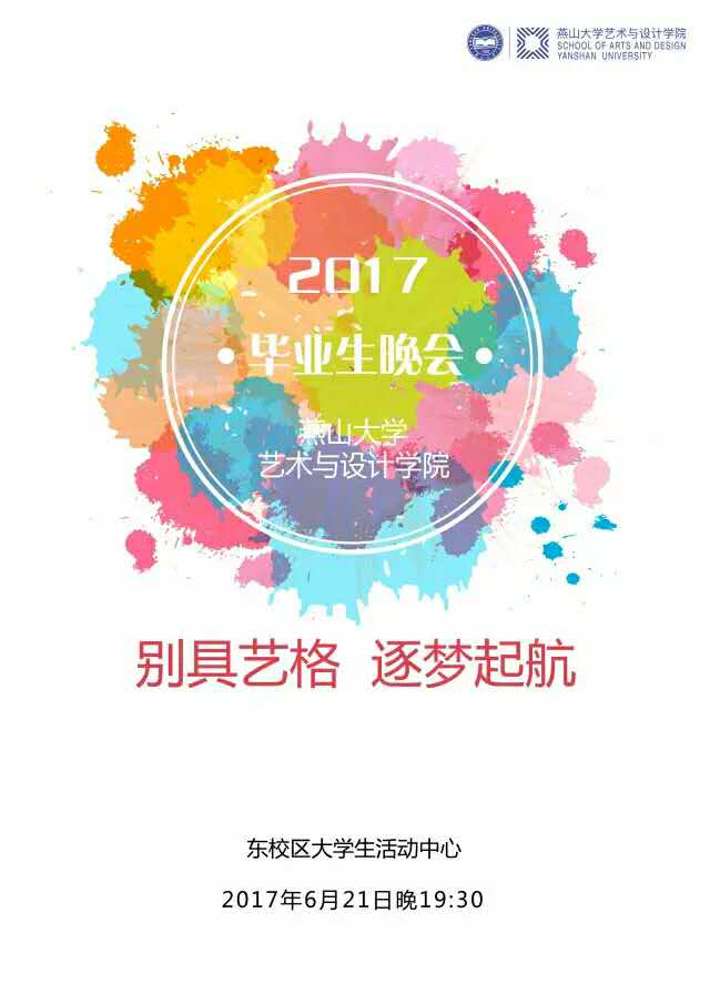 6月21日(周三)晚19:30,在东校区大学生活动中心举行“别具艺格、逐梦起航——每日大赛 2017届毕业生晚会”。
