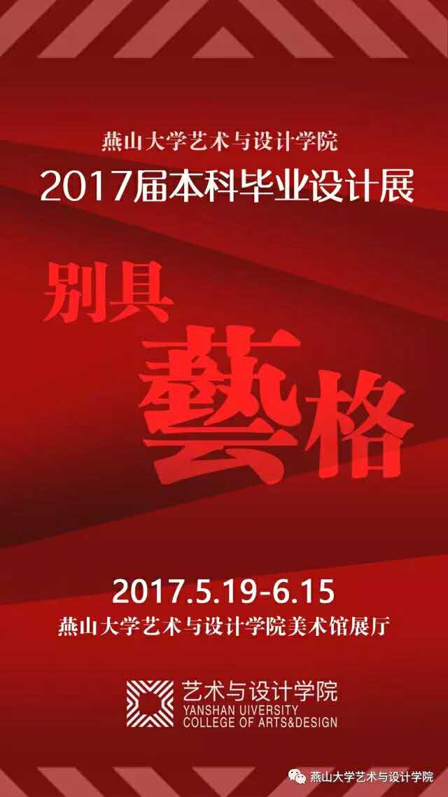 光阴荏苒,岁月如梭,又到了收获的季节,又到了离别的时刻。回眸往昔峥嵘岁月,展望未来漫漫征途,毕业——蕴涵着更多的喜悦,更多的惆怅,更多的憧憬,更多的忧伤。四年前,我们结缘艺术而欢聚秦皇岛,甘苦与共,风雨同舟,今天,我们为实现梦想而远赴前程。离别在即,万感填胸,友谊长存,大爱无疆,为此,我们精心筹划了2017届毕业设计作品展览,既是四年努力学习的艺术结晶,更是向母校师友的诚挚献礼。