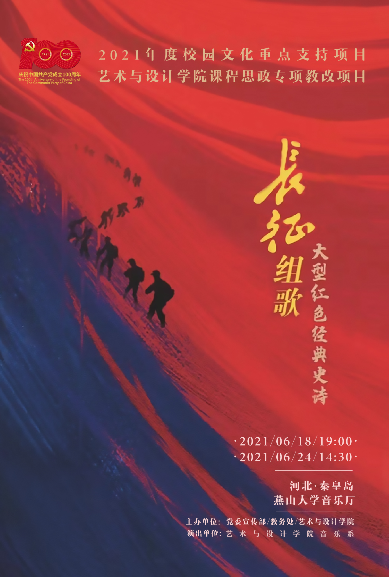 音乐系承办的大型红色经典史诗《长征组歌》将于6月18日(周五)晚19:30和6月24日(周四)下午14:30在每日大赛