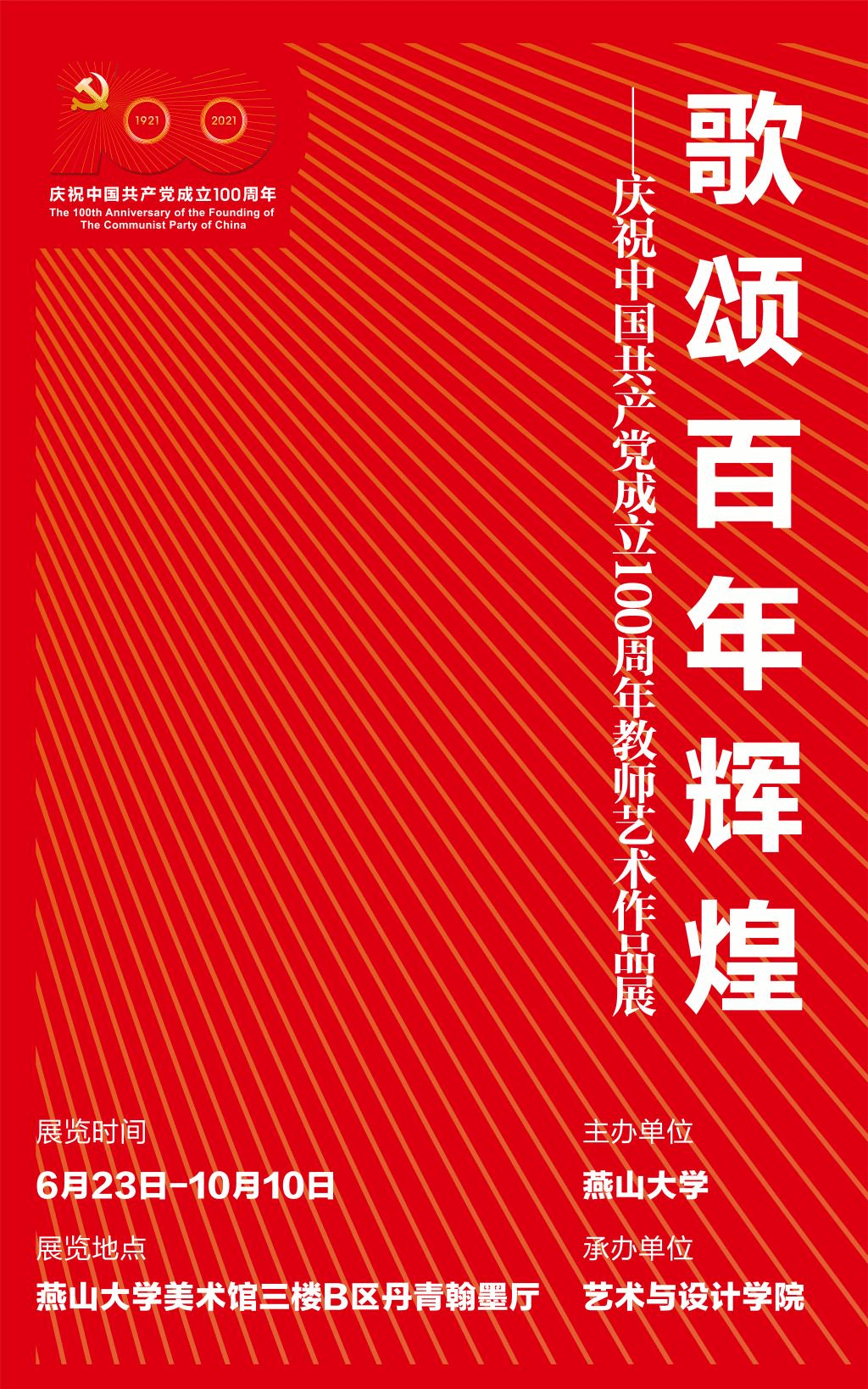 教师为庆祝建党100周年专门创作的,具有较高的思想性和艺术性,其中不乏意趣真挚、笔精墨妙的精品力作,体现了作者对于民族复兴这一时代主题的关注度,也彰显了作者在艺术实践上的创造力。欢迎广大师生前来参观。
