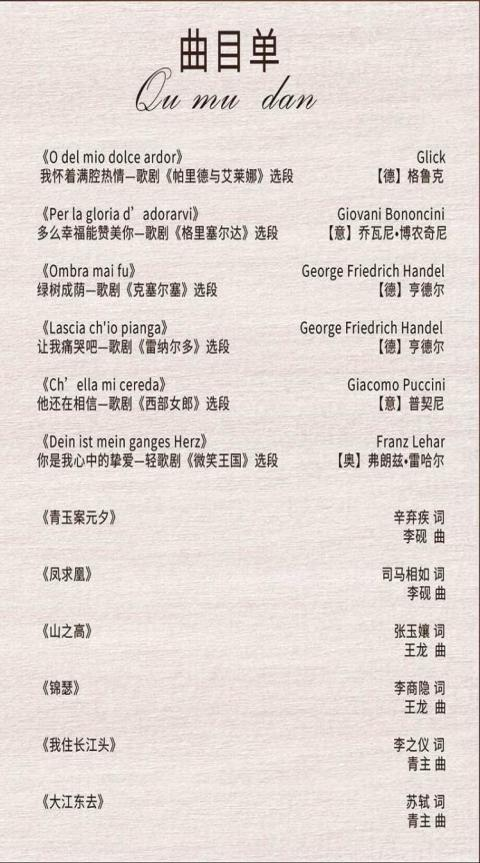 四、音乐会主题:外国歌剧咏叹调及中国古诗词艺术歌曲主题音乐会
