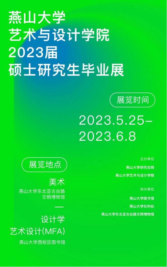 将于2023年5月25日-6月8日举办2023届硕士研究生毕业作品展。展览涵盖美术学、设计学、工业设计工程、艺术设计(MFA)四个专业(领域)研究生的毕业设计作品,展出形式为书画、雕塑、实物模型、招贴、动漫等。