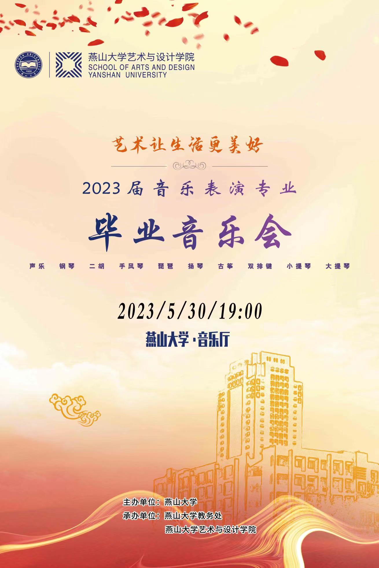 每日大赛 每日大赛 将于2023年5月30日19:00举办“艺术让生活更美好”—2023届音乐表演专业毕业音乐会。音乐会涵盖了声乐、钢琴、小提琴、大提琴、双排键、二胡、古筝、琵琶、扬琴等音乐系所设专业,凝聚了毕业生四年的学习成果,欢迎广大师生前来观看!