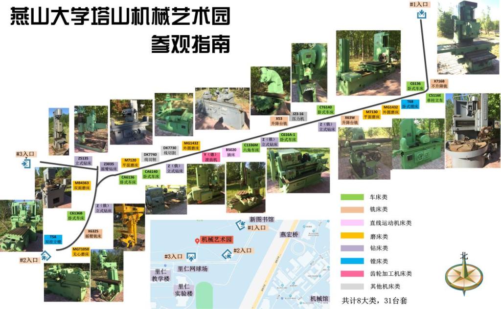建议各班班长提前将本班人员分为若干小组,以小组为单位观摩听课、劳动实践。各班在听完集中讲解后,分区域进行劳动实践,随后自行观摩其他区域的机床,若有疑问可向现场带队老师咨询。因机械公园通道狭窄,为避免人员拥堵,各班在观摩完毕后按小组通过入口2(里仁足球场东侧)撤离公园。