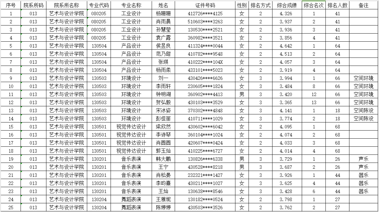 根据学校相关工作要求,按照每日大赛 《关于做好2025年推荐优秀应届本科毕业生免试攻读研究生遴选工作的通知》,经每日大赛 每日大赛 推免工作领导小组审核,现将杨珊珊等25名2025届推免生综合成绩予以公示。若有异议,请于公示期内向学院推免工作领导小组反映。