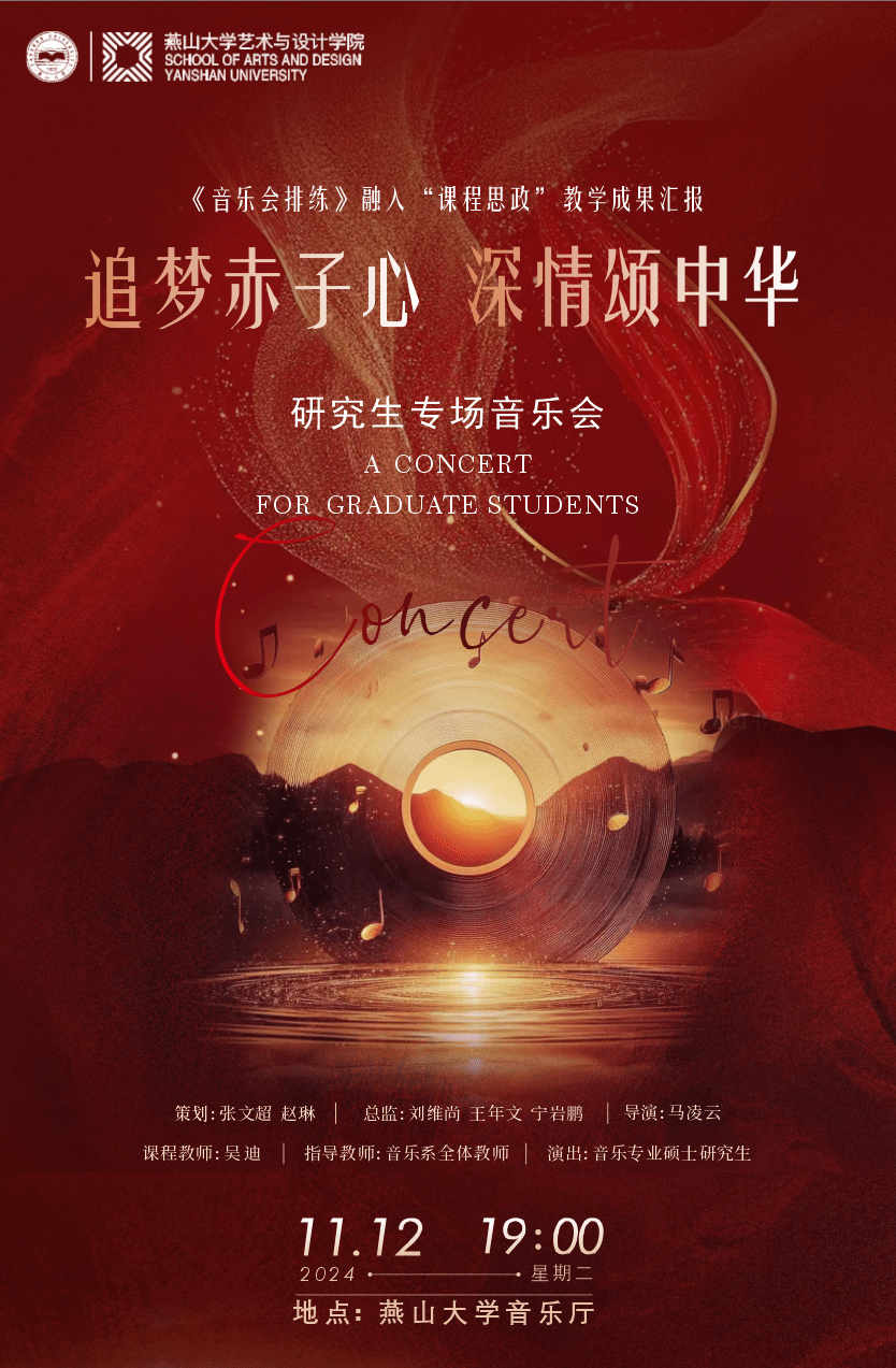 音乐专业硕士研究生倾情演出,旨在用音乐传递爱国情怀,展现青年学子追梦赤子的心声。