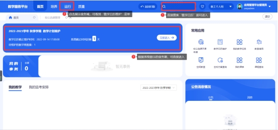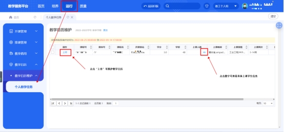 第一步进入个人教学任务:选择运行业务域,点击‘个人教学任务’,可看到如下图所示页面。