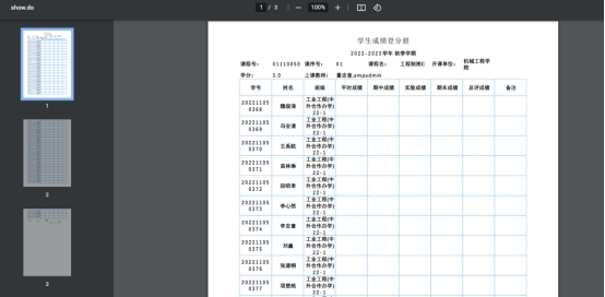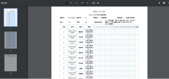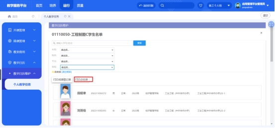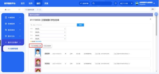 上课人数:点击数字可查看具体上课学生的信息,在该页面下可打印‘打印成绩登记表’和‘打印点名册’如图4——图7