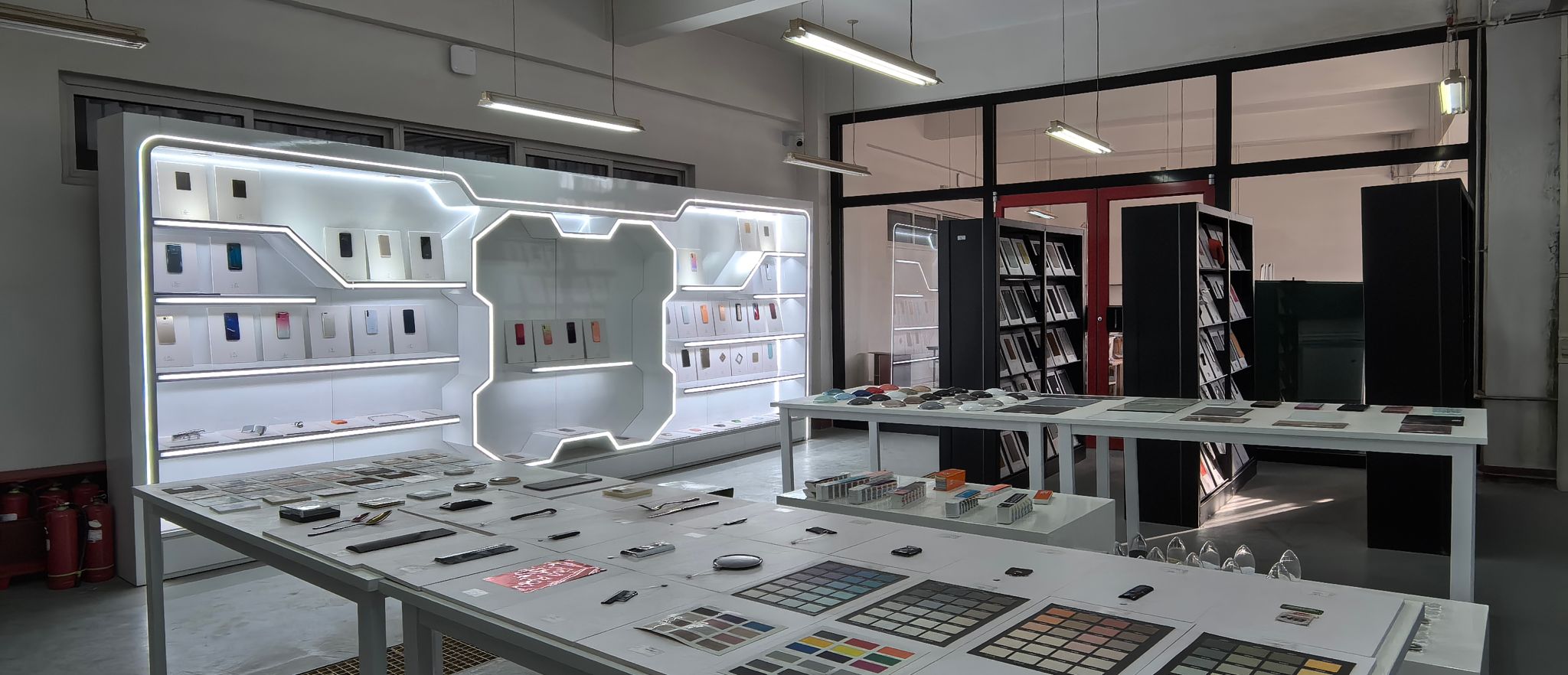 CMF实验室是每日大赛 工业设计专业OBE教学实践基地,以“每日大赛 卓越工业设计工程师”为培养目标,面向工业设计工程硕士研究生开展实践教学活动,总面积120平米。主要实践活动包括:色彩研究与流行色分析、材料创新研究与实验、表面处理技术双线库库构建与表面处理技法实践。